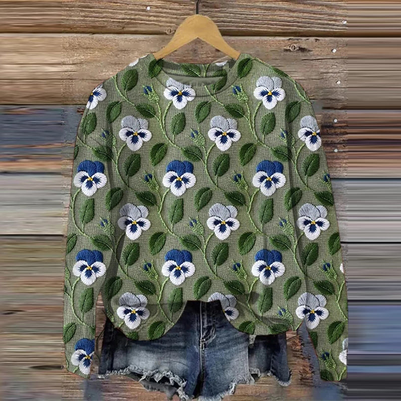Women's Embroidery Floral Leaves Graphic Print Casual Sweatshirt